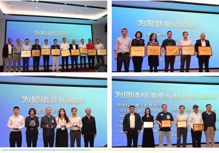 輪值會長活動上,協(xié)會李競明會長、包賀林監(jiān)事長、高文臣常務(wù)副會長宣讀了理事會通過審議的各項報告。接著為新入會會員單位、2022年輪值會長單位、贊助單位、團體標(biāo)準(zhǔn)牽頭起草單位、團體標(biāo)準(zhǔn)主要起草人頒發(fā)了證書和牌匾。