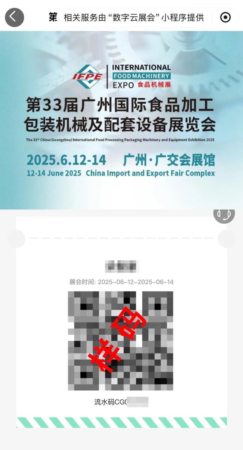 01掃碼關(guān)注公眾號(hào)STEP1:掃碼關(guān)注展會(huì)公眾號(hào)“IFPE食機(jī)展”。 |