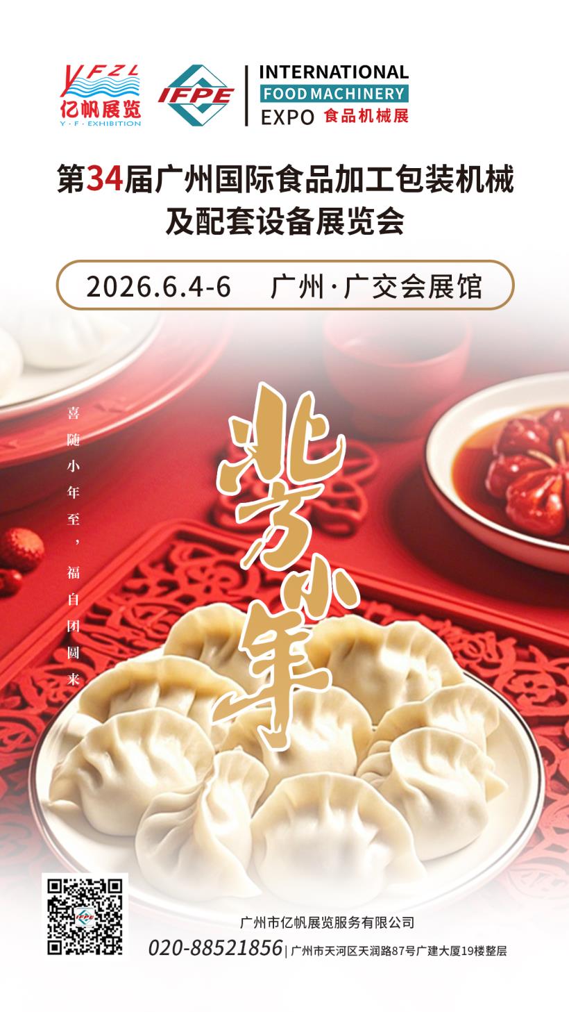 第34屆廣州國際食品加工包裝機械及配套設(shè)備展覽會(IFPE)將于2026年6月4-6日在廣州?廣交會展館舉行,IFPE食機展會由廣州市億帆展覽服務(wù)有限公司主辦,經(jīng)過多年的積淀與發(fā)展,已成為一個集食品生產(chǎn)、加工、包裝、食品招商全產(chǎn)業(yè)鏈于一體的行業(yè)品牌盛會。IFPE食機展與廣州國際大健康產(chǎn)業(yè)博覽會(IHE China大健康展)同期舉辦,將聯(lián)手為業(yè)內(nèi)人士搭建一個技術(shù)交流、促進合作、擴大上下游貿(mào)易、提高品牌和企業(yè)知名度的高品質(zhì)商貿(mào)平臺。