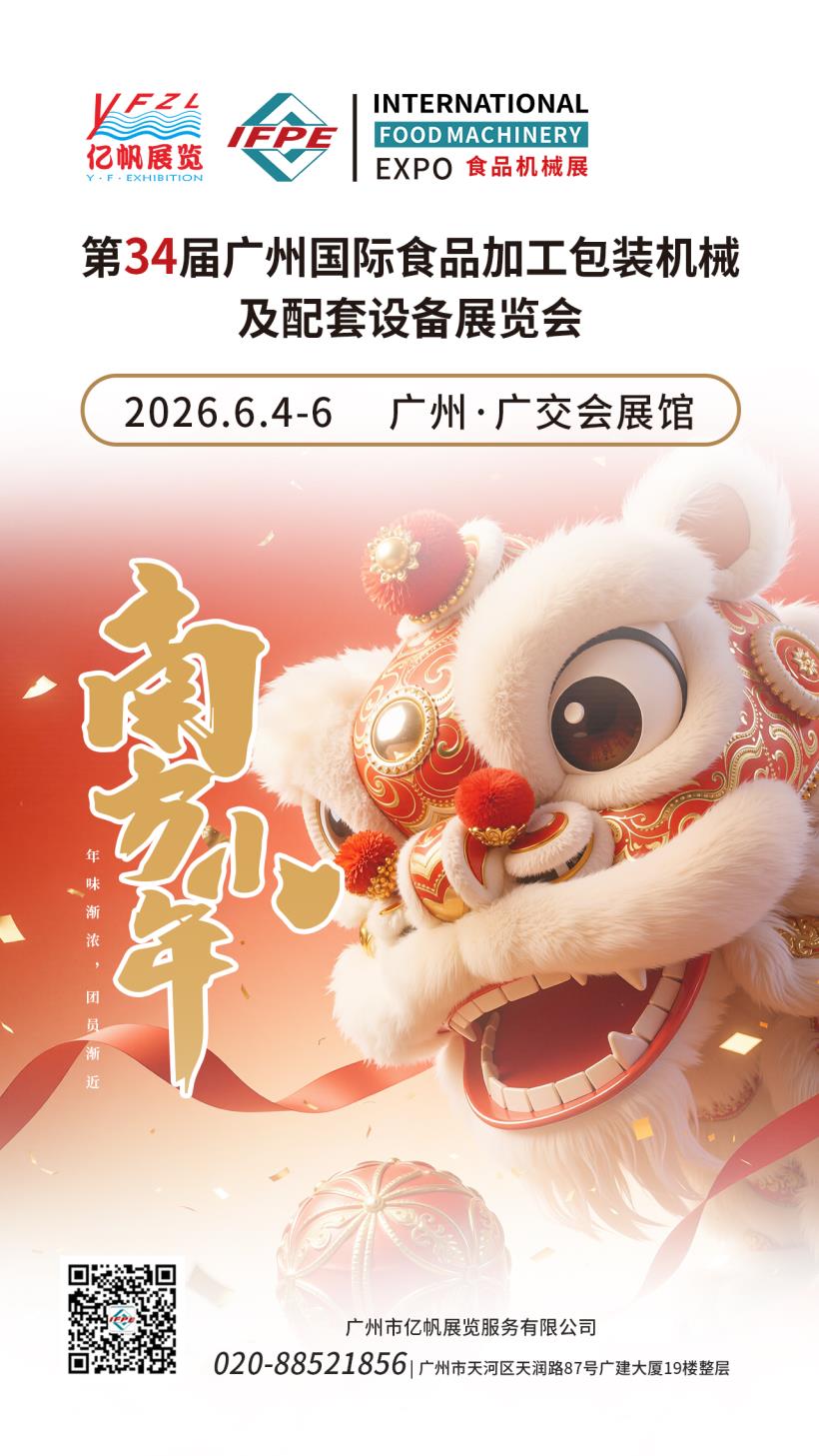 第34屆廣州國際食品加工包裝機械及配套設(shè)備展覽會(IFPE)將于2026年6月4-6日在廣州?廣交會展館舉行,IFPE食機展會由廣州市億帆展覽服務(wù)有限公司主辦,經(jīng)過多年的積淀與發(fā)展,已成為一個集食品生產(chǎn)、加工、包裝、食品招商全產(chǎn)業(yè)鏈于一體的行業(yè)品牌盛會。IFPE食機展與廣州國際大健康產(chǎn)業(yè)博覽會(IHE China大健康展)同期舉辦,將聯(lián)手為業(yè)內(nèi)人士搭建一個技術(shù)交流、促進合作、擴大上下游貿(mào)易、提高品牌和企業(yè)知名度的高品質(zhì)商貿(mào)平臺。