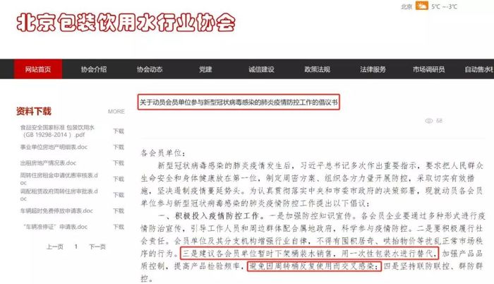 疫情嚴(yán)重影響我們的生活,也讓全中國的人們都意識到唯有健康才是重點。在疫情期間,北京、山東淄博和云南昆明等多地對如何規(guī)范桶裝水出臺了相關(guān)監(jiān)管或指導(dǎo),包括桶裝水只送水不退桶,以及提倡使用一次性大包裝水。