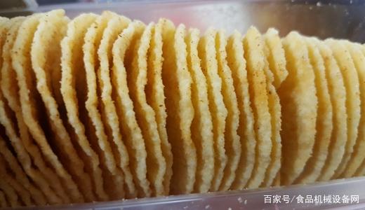 另一種是將馬鈴薯粉、馬鈴薯泥壓制成片后油炸制成。將通過清洗、去皮的馬鈴薯打碎,加入一定比例的玉米淀粉,再通過壓力機(jī)壓實(shí)、切片機(jī)切片,隨后采用油炸機(jī)進(jìn)行油炸,裹料調(diào)味后即可進(jìn)行包裝。同樣的,在這一生產(chǎn)線上,自動(dòng)化生產(chǎn)設(shè)備也大大降低了人工參與度,實(shí)現(xiàn)薯片的無人化生產(chǎn)。