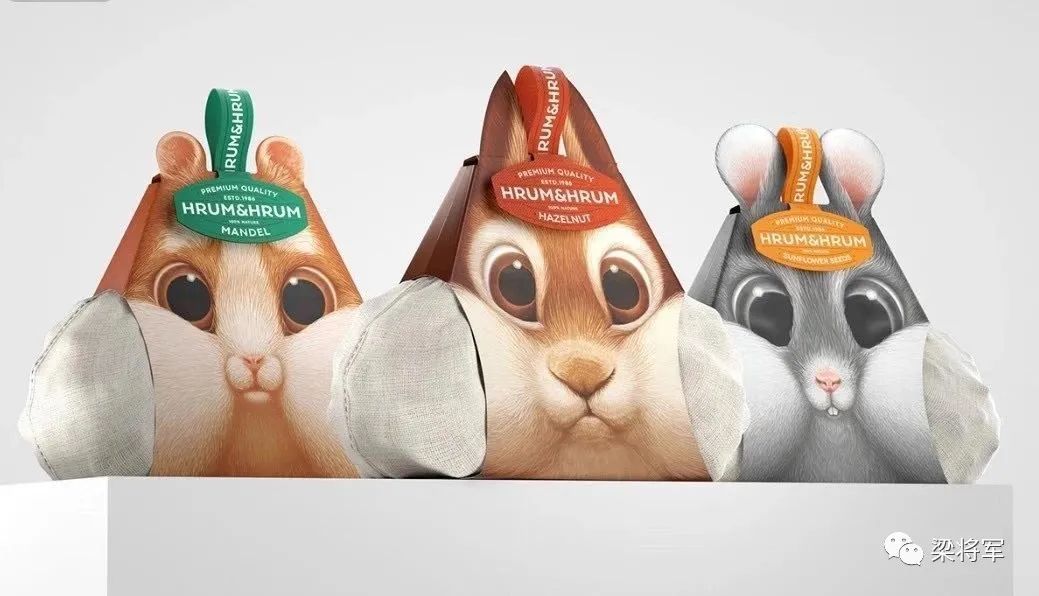 俄羅斯堅果品牌Hrum-Hrum推出一款松鼠象形堅果包裝,松鼠嘴巴里塞滿堅果,即便看不到產(chǎn)品名稱,消費者也能根據(jù)包裝的元素形態(tài),立刻識別出這賣的就是堅果。