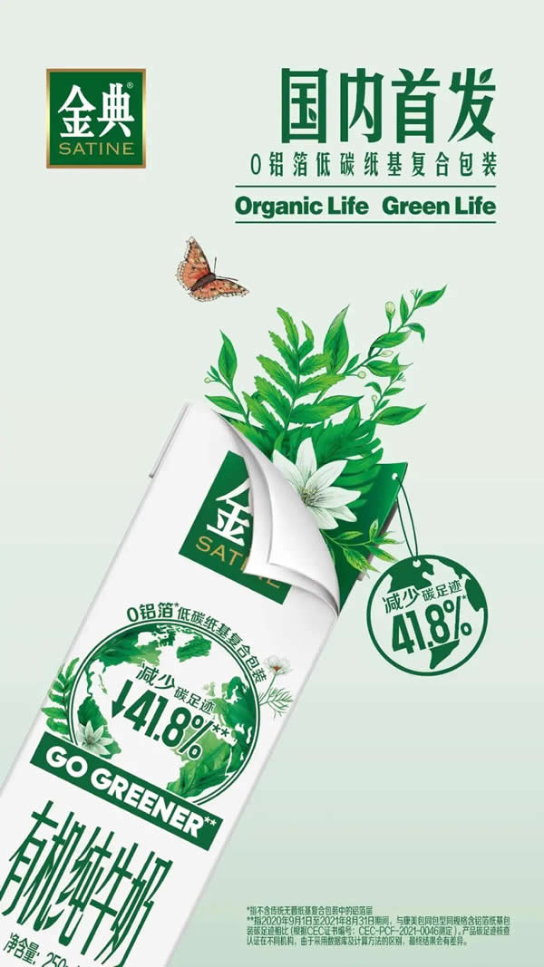 12月11日,有機奶領(lǐng)導(dǎo)品牌金典官宣在國內(nèi)首發(fā)0鋁箔*低碳**紙基復(fù)合包裝。據(jù)了解,這款新一代不含鋁箔的無菌紙基復(fù)合包裝,使用全新的阻隔層替代鋁箔,可以很大程度上減少碳足跡,助力碳中和目標(biāo)的實現(xiàn)。