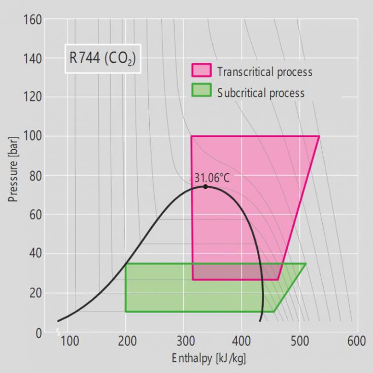 R744 (CO 2 )– 壓力/焓圖。圖片來源:bitzer