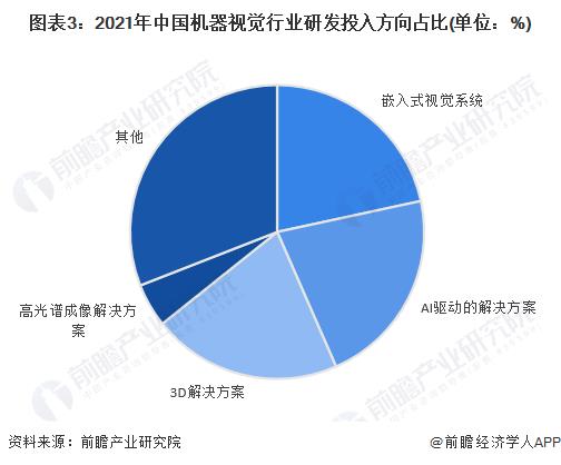 2019-2021年,中國機器視覺行業(yè)研發(fā)投入從14.6億元增長至31.0億元,年均復(fù)合增長為45.7%。從研發(fā)投入占比看,AI驅(qū)動的解決方案研發(fā)投入最高,2021年,AI驅(qū)動的解決方案研發(fā)投入占全行業(yè)研發(fā)投入的比例為21.8%,其次是嵌入式視覺系統(tǒng)。3D解決方案研發(fā)投入增長率最快,2019-2021年,3D解決方案方向研發(fā)投入從2.3億元增長至6.5億元。