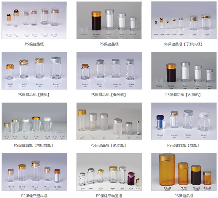 PS瓶透明度極高,表面光澤,容易印刷,廣泛應用于食品、藥品和保健品包裝等。