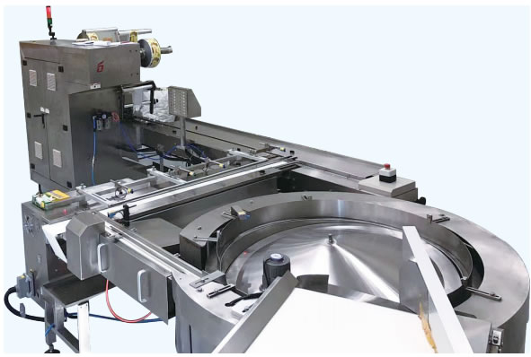 功能與特點(diǎn):蛋卷無(wú)托理料包裝線由供料帶、圓盤整理機(jī)、自動(dòng)理料機(jī)組、尾架以及包裝機(jī)組成,利用圓盤整理機(jī)的離心力, 對(duì)蛋卷進(jìn)行整理,并有序地送進(jìn)自動(dòng)理料機(jī)組進(jìn)行定位包裝。