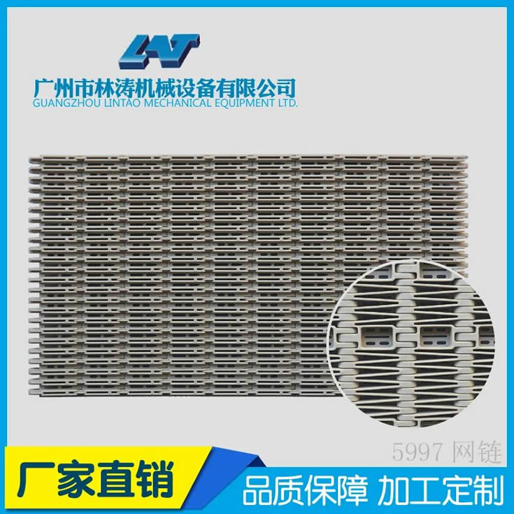該網(wǎng)鏈能用于最苛刻的應(yīng)用,如帶有高產(chǎn)品負(fù)荷和長距離傳送,凸肋的敞開面積保證了最佳的液體排放和機械強度,它的設(shè)計有利于產(chǎn)品的清洗和冷卻或加溫。橫肋設(shè)計提供了高橫向強度。大型殺菌機,大型儲瓶臺。