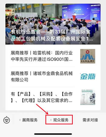 2、關(guān)注微信公眾號(hào)“IFPE食機(jī)展”,點(diǎn)擊菜單欄“觀(guān)眾服務(wù)”下的“參觀(guān)報(bào)名”,按照步驟填寫(xiě)即可。
