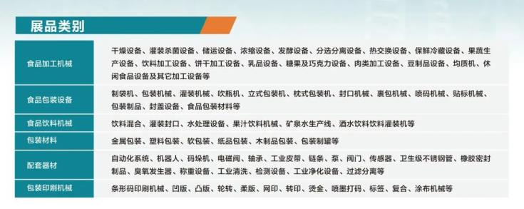 本屆IFPE食機(jī)展展品范圍涵蓋:食品加工機(jī)械、食品包裝設(shè)備、食品飲料機(jī)械、包裝材料、配套器材、包裝印刷機(jī)械等多個專業(yè)領(lǐng)域,為食品、飲料、乳品、日化、制藥、健康等行業(yè)提供豐富選擇和一站式加工及包裝解決方案。