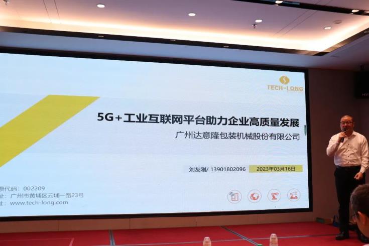 廣州達意隆包裝機械股份有限公司劉友剛副總經(jīng)理分享了《5G+工業(yè)互聯(lián)網(wǎng)平臺助力企業(yè)高質(zhì)量發(fā)展》,介紹了5G+工業(yè)互聯(lián)網(wǎng)平臺及MOM平臺功能的不同模塊。