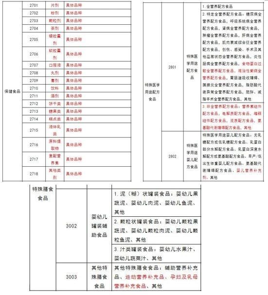 最新修訂的"食品生產(chǎn)許可品種明細(xì)表"的變動并不大,影響最深的當(dāng)屬特殊食品。其中保健食品被細(xì)化為片劑、粉劑等18個類別;特殊醫(yī)學(xué)用途配方食品增加了食物蛋白過敏全營養(yǎng)配方食品、難治性癲癇全營養(yǎng)配方食品及非全營養(yǎng)配方食品;特殊醫(yī)學(xué)用途嬰兒配方食品中增加了嬰兒營養(yǎng)補(bǔ)充劑;特殊膳食食品中新增了運動營養(yǎng)補(bǔ)充品及孕婦及乳母營養(yǎng)補(bǔ)充食品。