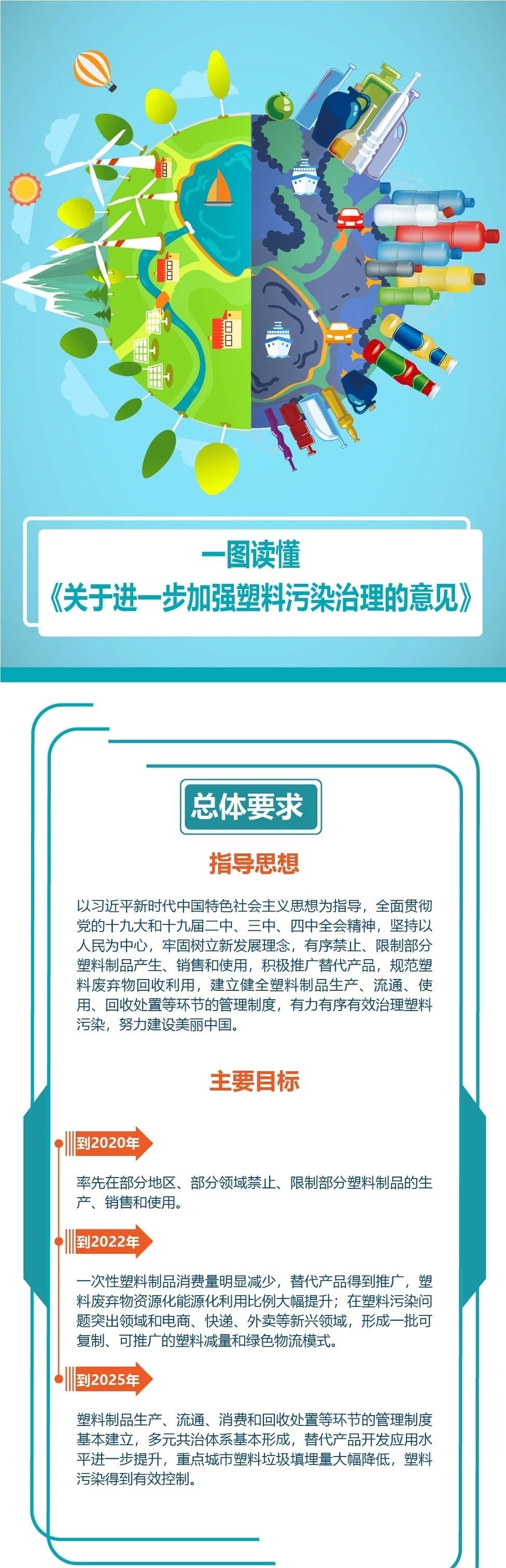 央視新聞1月19日消息,國家發(fā)展改革委、生態(tài)環(huán)境部今天(19日)公布《關于進一步加強塑料污染治理的意見》,到2020年底,我國將率先在部分地區(qū)、部分領域禁止、限制部分塑料制品的生產(chǎn)、銷售和使用,到2022年底,一次性塑料制品的消費量明顯減少,替代產(chǎn)品得到推廣。
