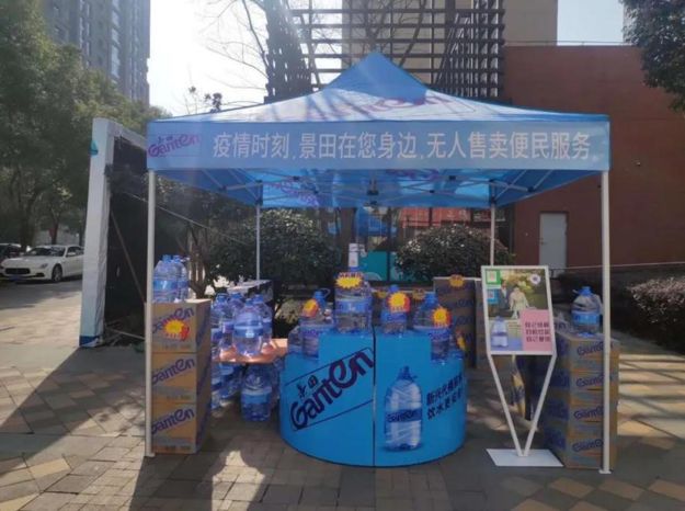 廣州一社區(qū)的景田桶裝水無人售賣點