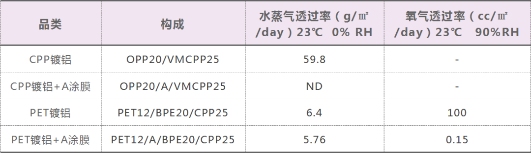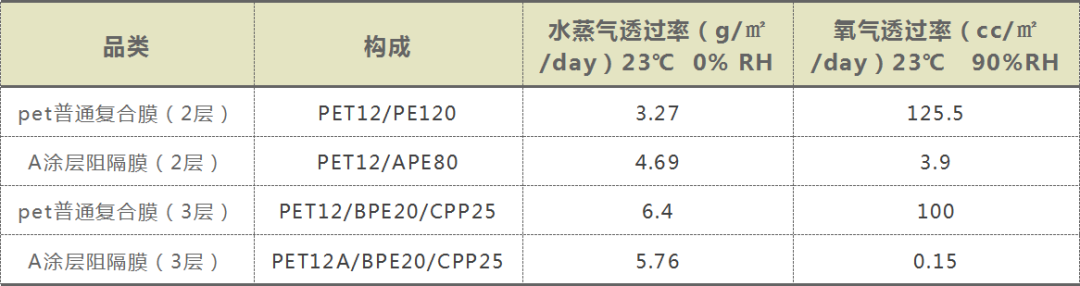 PVA高阻隔涂膜和pet普通復合膜的阻隔性數(shù)據(jù)對比