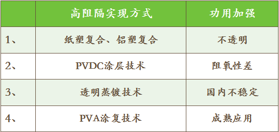 在可視性方面,利用透明蒸鍍、PVA涂層、pvdc(k)涂層、evoh等技術,使軟包裝同時具備可視化和高阻隔性能。