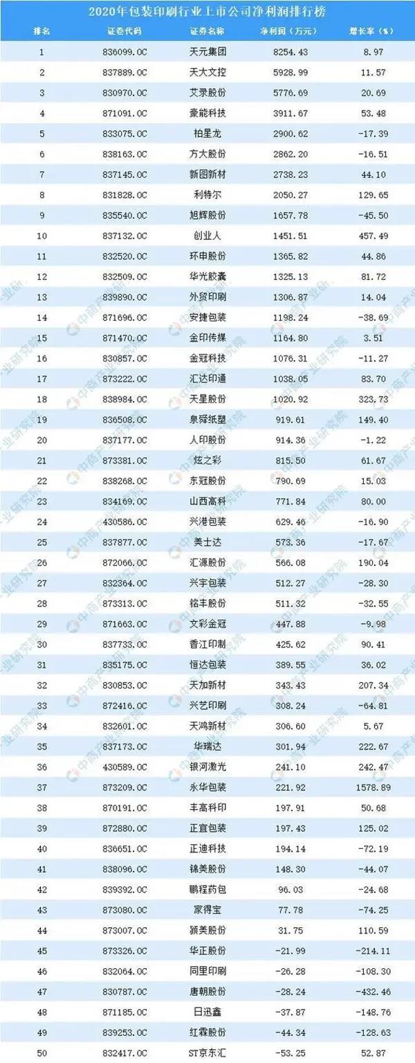 據(jù)中商產業(yè)研究院大數(shù)據(jù)庫數(shù)據(jù)顯示,2019年上市公司整體表現(xiàn)良好;共有62家包裝印刷行業(yè)上市公司公布凈利潤,其中,有18家凈利潤為負。據(jù)榜單顯示:天元集團、天大文控、艾錄股份、豪能科技、柏星龍、方大股份、新圖新材、利特爾、旭輝股份、創(chuàng)業(yè)人為2019年包裝印刷行業(yè)凈利潤前十企業(yè)。