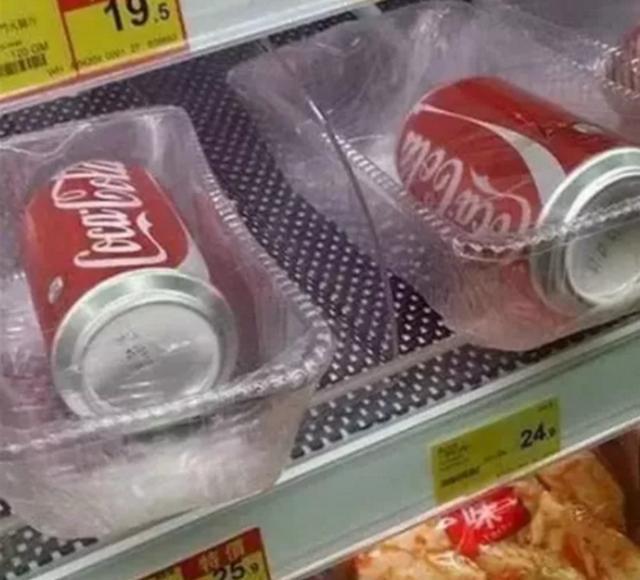 然而這些還不是最夸張的,看到可樂才是真正的夸張,可樂本身就有包裝,而且還是鋁罐的,不怕摔,不怕壓,那么將可樂裝進(jìn)保鮮盒,蓋上保鮮膜又是什么操作,本就密封很好的飲品,覆蓋上保鮮膜難道不是畫蛇添足嗎?保鮮盒不要錢還是保鮮膜不要錢,最終這一切都是由消費(fèi)者買單