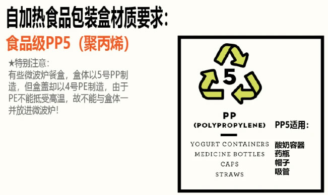 ★特別注意:有些微波爐餐盒,盒體以5號(hào)PP制造,但盒蓋卻以4號(hào)PE制造,由于PE不能抵受高溫,故不能與盒體一并放進(jìn)微波爐!