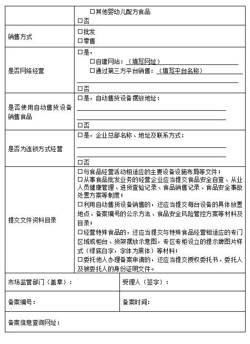 一、合法的市場(chǎng)主體從事僅銷(xiāo)售預(yù)包裝食品活動(dòng),應(yīng)當(dāng)自訂購(gòu)食品準(zhǔn)備銷(xiāo)售之日起到正式銷(xiāo)售前,向經(jīng)營(yíng)場(chǎng)所所在地縣級(jí)市場(chǎng)監(jiān)管部門(mén)備案。已取得食品經(jīng)營(yíng)許可證的,食品經(jīng)營(yíng)許可證在有效期屆滿(mǎn)前繼續(xù)有效,無(wú)需備案;許可證有效期屆滿(mǎn)繼續(xù)經(jīng)營(yíng)的,應(yīng)當(dāng)在食品經(jīng)營(yíng)許可證有效期屆滿(mǎn)前進(jìn)行備案。僅銷(xiāo)售預(yù)包裝食品的食品經(jīng)營(yíng)者備案后,增加其他食品經(jīng)營(yíng)項(xiàng)目的,應(yīng)當(dāng)依法取得食品經(jīng)營(yíng)許可,并同時(shí)撤銷(xiāo)備案。不同市場(chǎng)主體不得使用同一經(jīng)營(yíng)場(chǎng)所從事僅銷(xiāo)售預(yù)包裝食品經(jīng)營(yíng)活動(dòng)和備案。在不同經(jīng)營(yíng)場(chǎng)所從事僅銷(xiāo)售預(yù)包裝食品經(jīng)營(yíng)活動(dòng)的,應(yīng)當(dāng)分別備案。