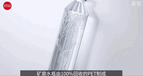 礦泉水品牌依云(Evian),在新加坡推出首款無標(biāo)簽、100%可回收PET (rPET)瓶子。瓶蓋和瓶身都使用了可回收塑料,并且進(jìn)行了浮雕式的微標(biāo)處理。