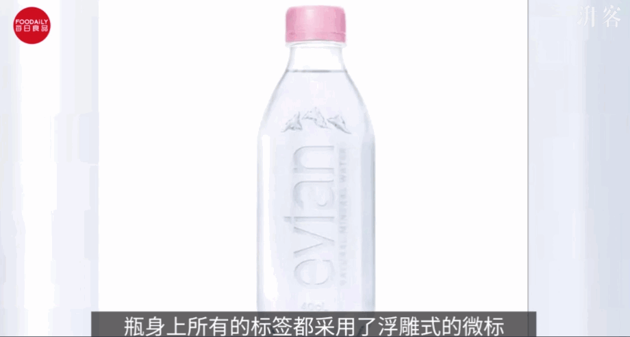 以依云的無標(biāo)簽瓶為例,其品牌LOGO和基本的標(biāo)簽信息是模內(nèi)壓印刻入瓶身的。