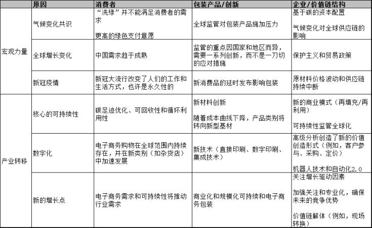 幾十年來,全球包裝行業(yè)在幾個(gè)大趨勢的推動下實(shí)現(xiàn)了健康增長。他們將繼續(xù)塑造業(yè)務(wù)發(fā)展,我們預(yù)計(jì)其中兩個(gè)——可持續(xù)性和數(shù)字化(尤其是電子商務(wù)),將為行業(yè)領(lǐng)導(dǎo)者帶來重大挑戰(zhàn),以及千載難逢的轉(zhuǎn)型機(jī)會。