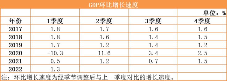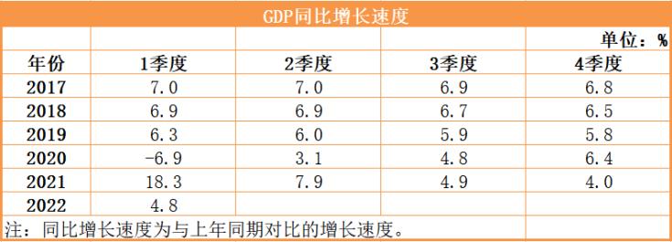 國家統(tǒng)計局最新發(fā)布,2022年一季度中國國內(nèi)生產(chǎn)總值270178億元,按不變價計算,同比增長4.8%,比2021年四季度環(huán)比增長1.3%。