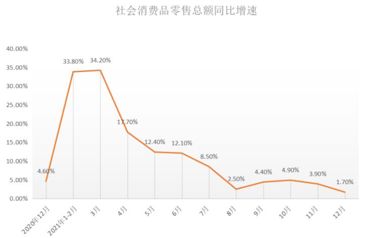 據(jù)國家統(tǒng)計局數(shù)據(jù),2021年全國社會消費品零售總額440823億元,比上年增長12.5%,兩年平均增速為3.9%。