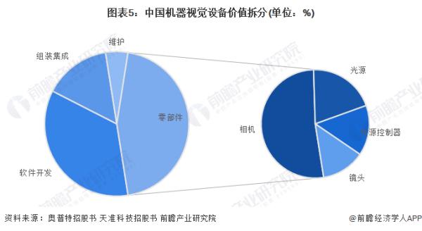 表面上看,國內(nèi)市場逐漸形成了“國產(chǎn)”替代“進口”的扭轉(zhuǎn)現(xiàn)象,但從我國機器視覺系統(tǒng)成本結(jié)構(gòu)來看,就會發(fā)現(xiàn),零部件環(huán)節(jié)的占比超過60%,底層軟件系統(tǒng)開發(fā)占比達(dá)到19.88%。其中,元器件成本中,相機占比最大,達(dá)到27.11%。