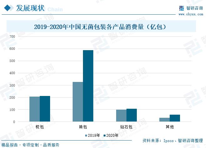 目前,我國(guó)無菌包裝行業(yè)細(xì)分類產(chǎn)品主要為枕包、磚包、鉆石包以及其他。根據(jù)數(shù)據(jù)顯示,磚包的占比最高,在2020年占比達(dá)到60%以上;其次是枕包,市場(chǎng)占比達(dá)到22%,枕包憑借良好的保存優(yōu)勢(shì),逐步替代普通塑料袋、傳統(tǒng)百利包,市場(chǎng)滲透率將不斷提高。鉆石包隨著中高端奶品的發(fā)展,未來需求量將會(huì)增加,就目前而言,市場(chǎng)占比較低,2022年消費(fèi)量達(dá)到106.1億包,未來潛力巨大。